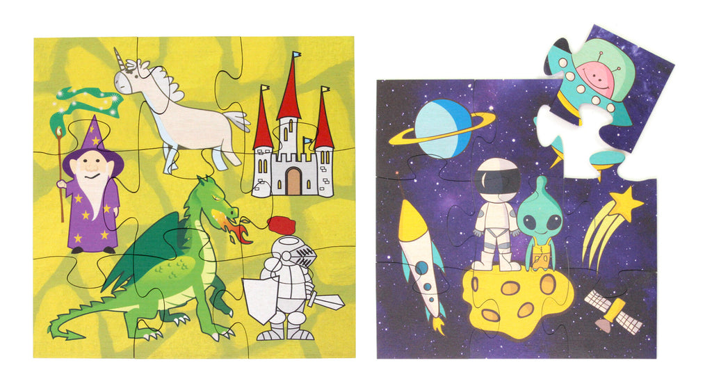 This hardwood plywood puzzle measures 7" long, 7" wide, and 1/8" thick. Printed with durable and colorful non-toxic ink. Puzzle includes a cloth bag for storage.